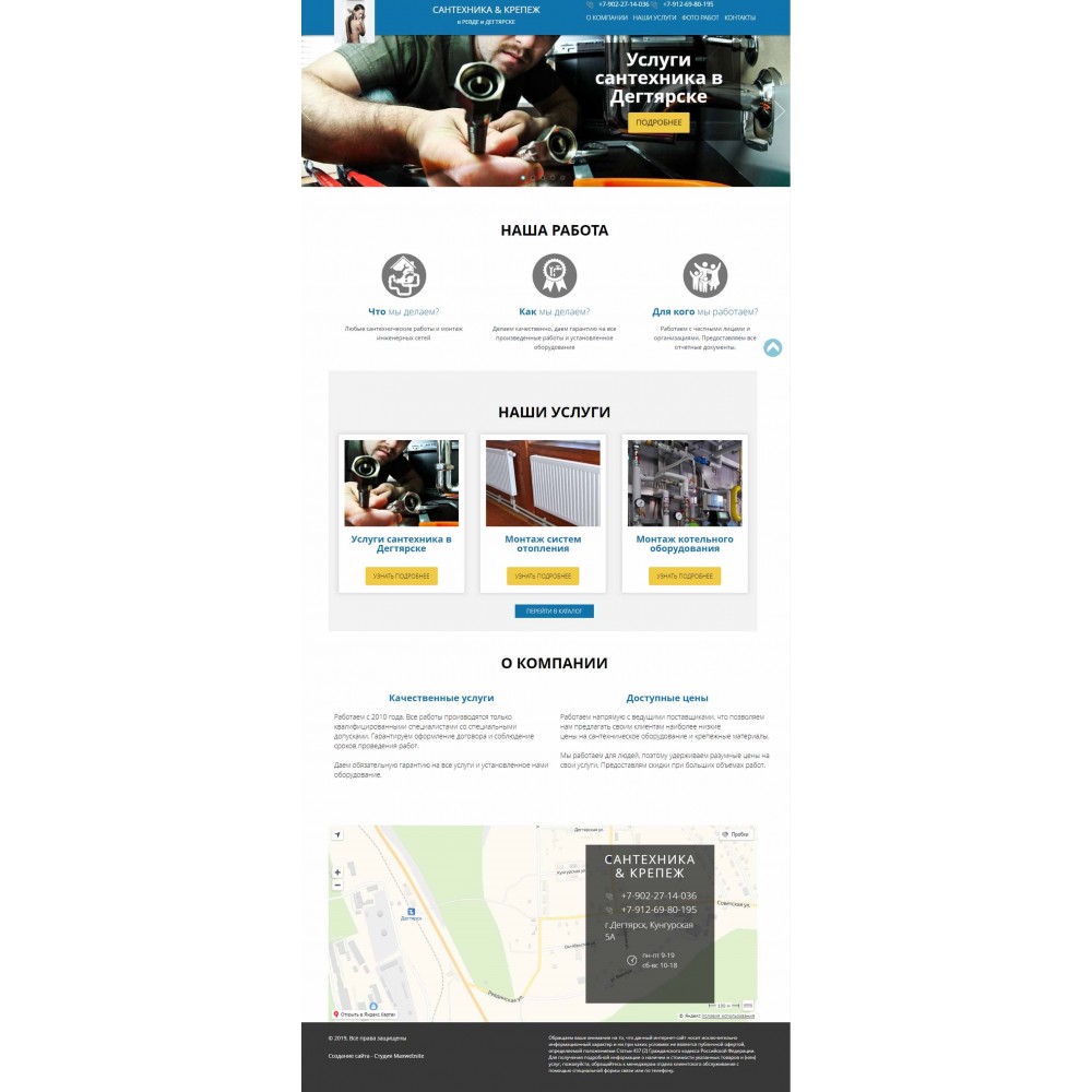 Бизнес-сайт по сантехническим услугам в г.Дегтярске от веб-студии Максвебсайт г. Карпинск