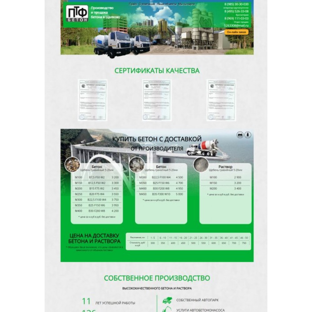 Сайт одностраничник завода по производству бетона от веб-студии Максвебсайт г. Карпинск